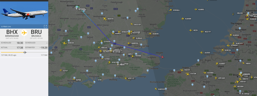 SAS har under veckan flugit ett antal gånger mellan Bryssel och Birmingham med en Airbus A330-300, flygningar som definitivt inte hör till det vanliga hos SAS.